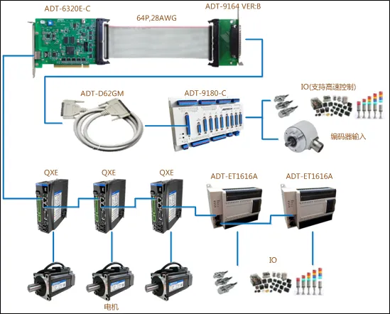 Dalam projek itu, ADT-6320EC ialah kad kawalan gerakan stesen induk Adtech EtherCAT dan ADT-9180-C ialah papan pengembangan kawalan digital satu hujung yang menyokong. Fungsi tersuai dan keperluan prestasi adalah padat dan memenuhi keperluan pelanggan sepenuhnya. indeks: